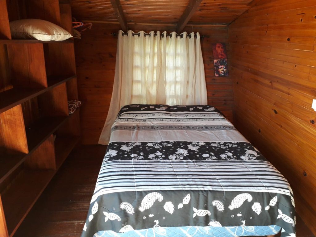 Cuenta con una cama de matrimonio, una de una plaza y un sofá cama de plaza y media.